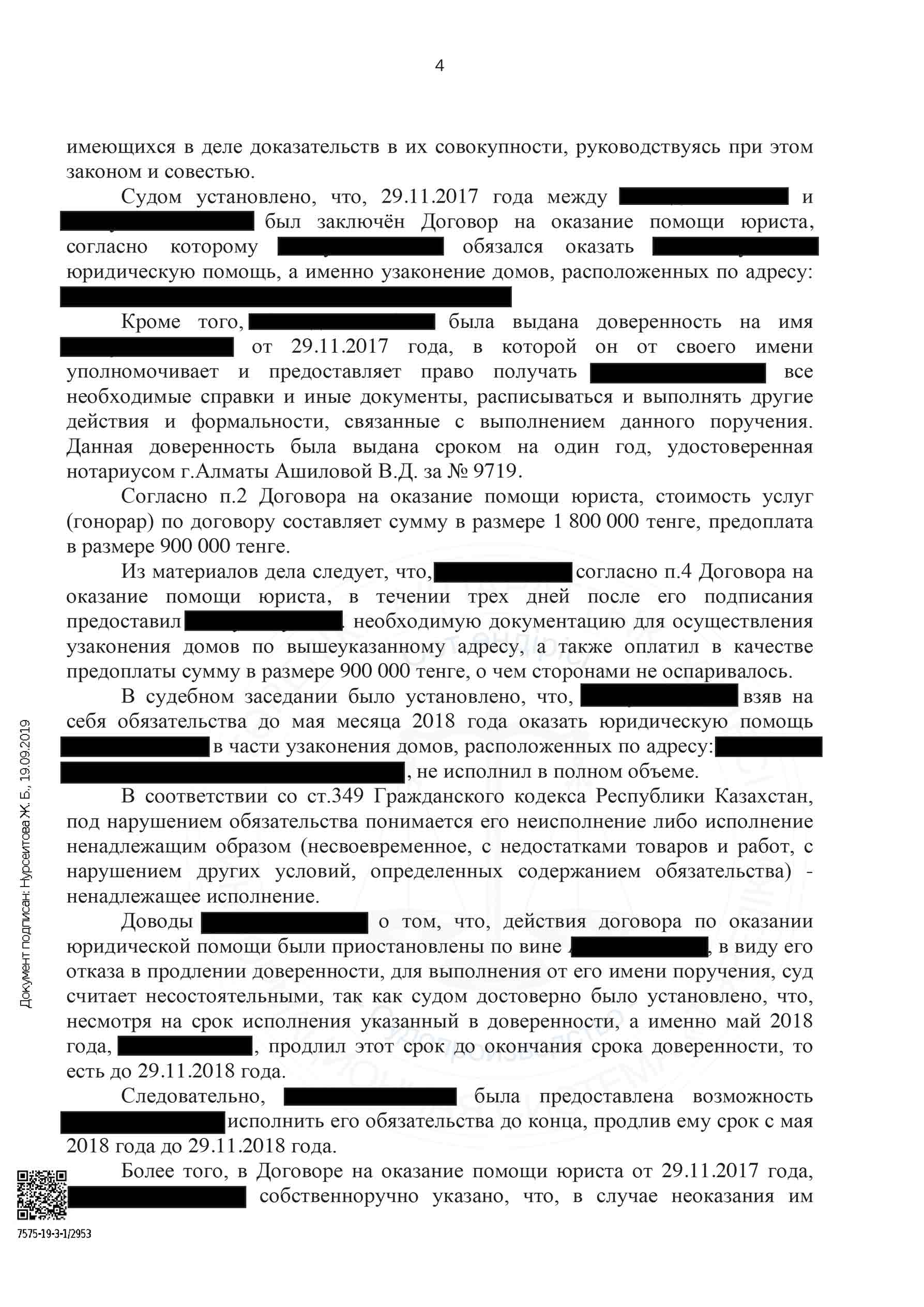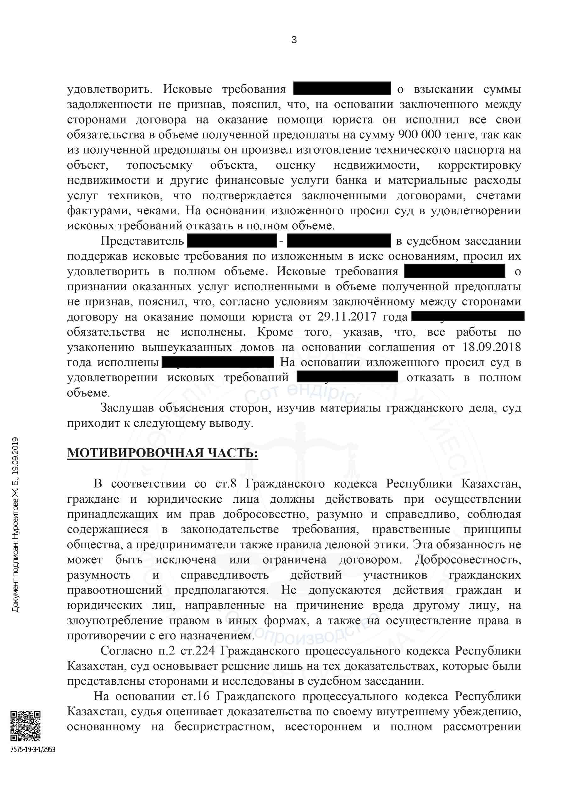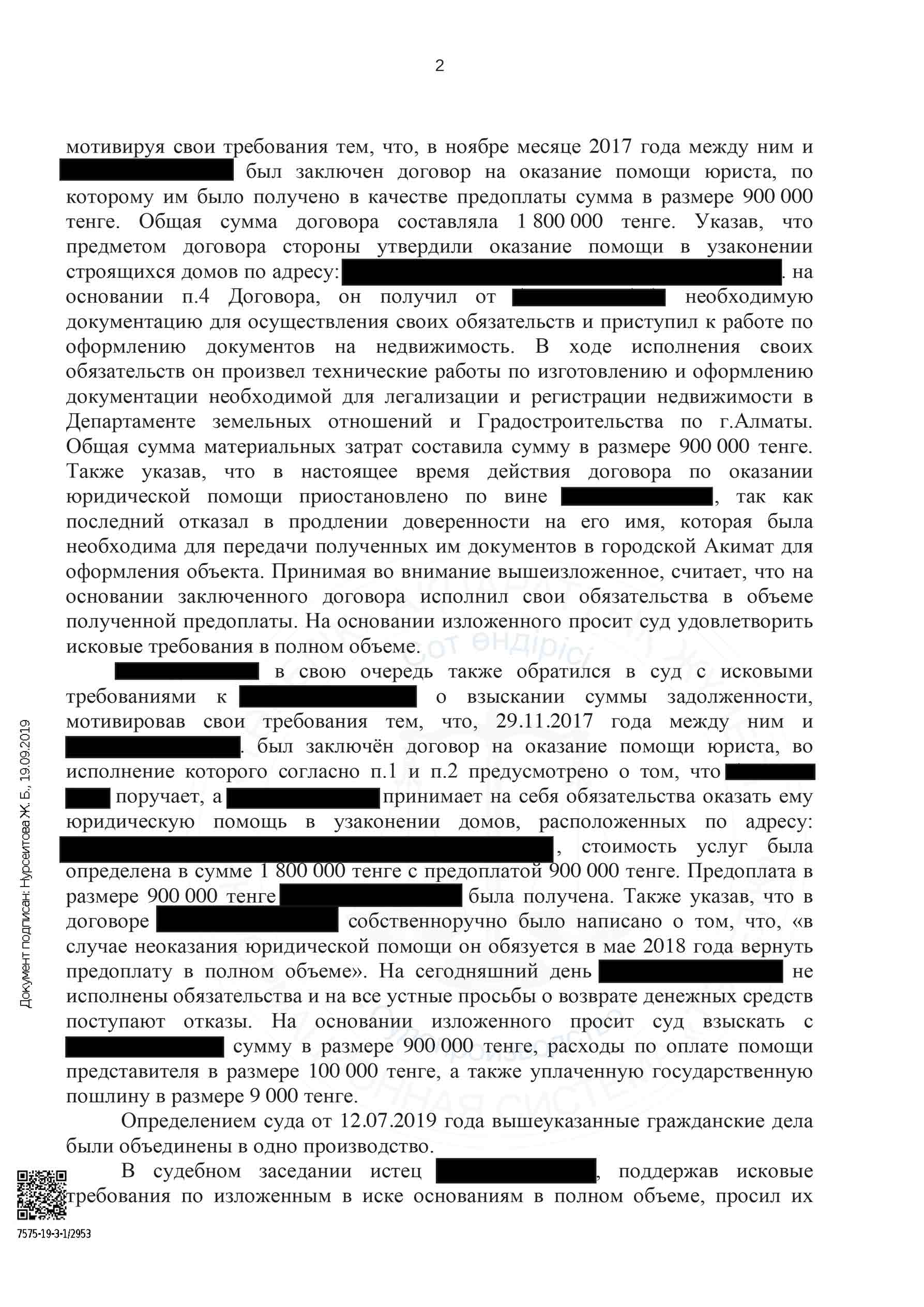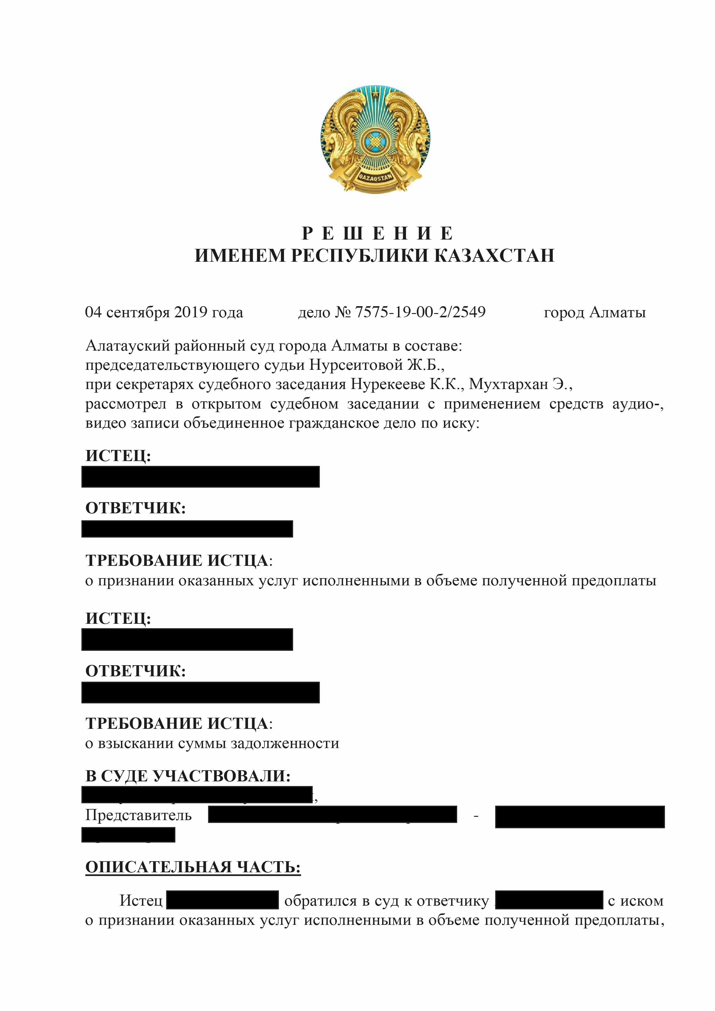 После долгих переговоров не было достигнуто соглашение мирного урегулирования и тем самым было решено обратится в Суд по неисполнению договорных обязательств по юридическому сопровождению.