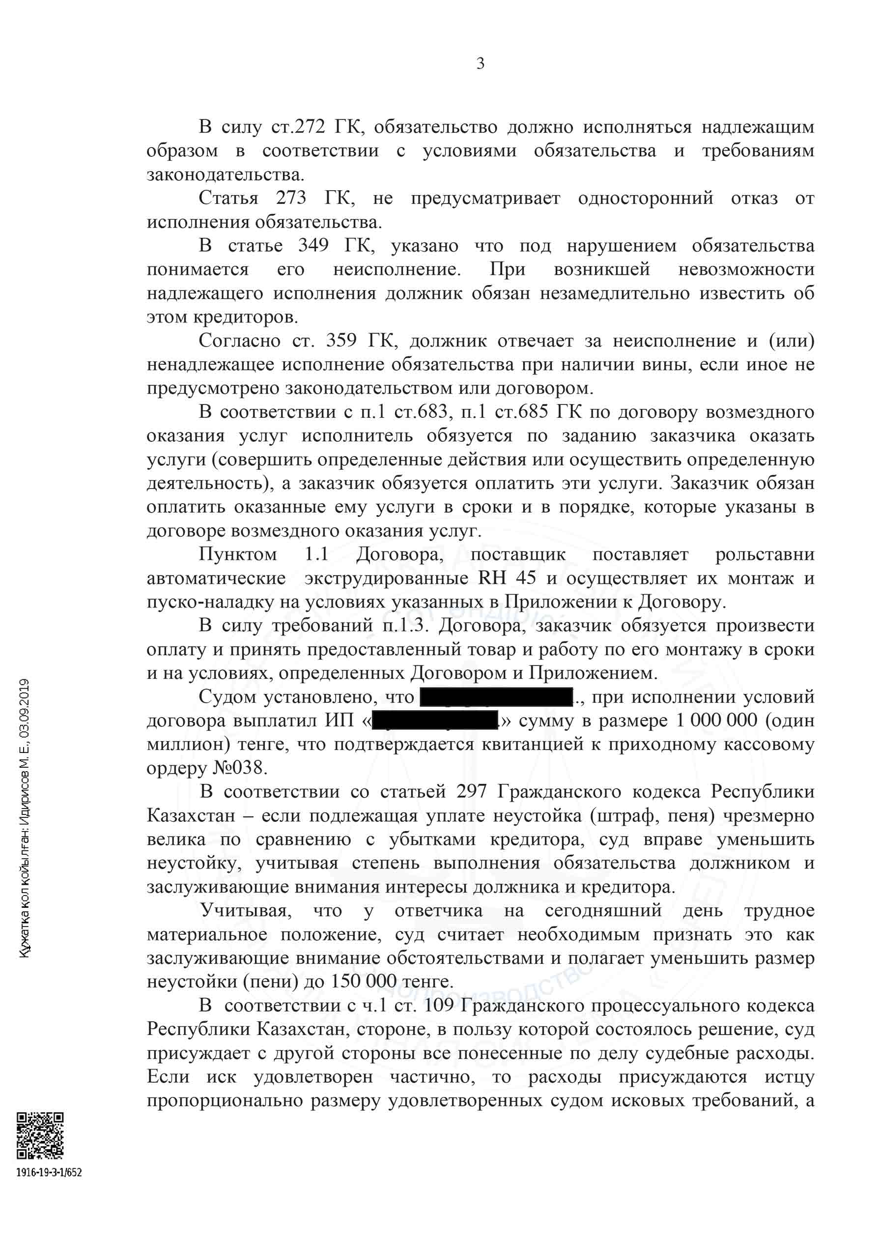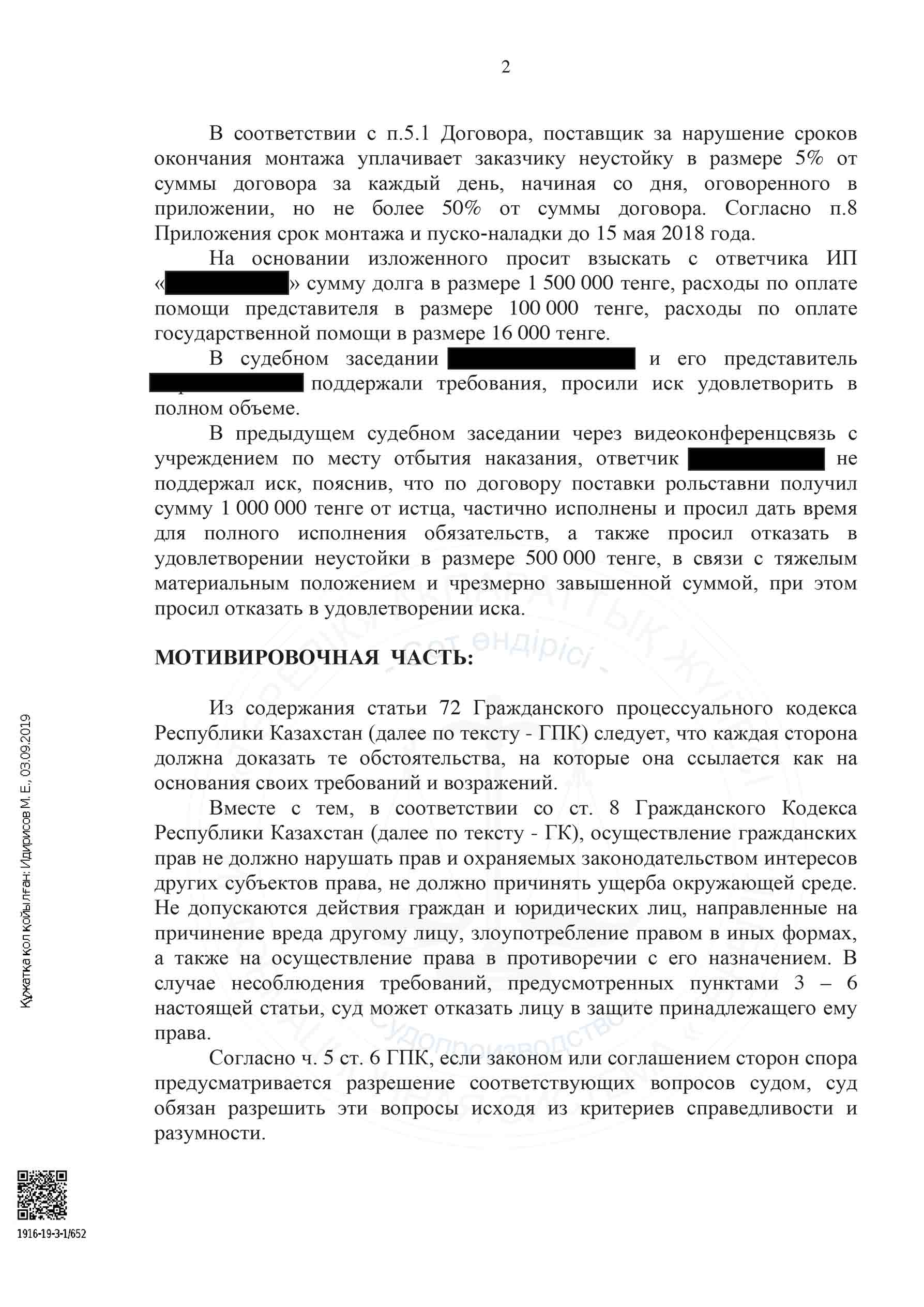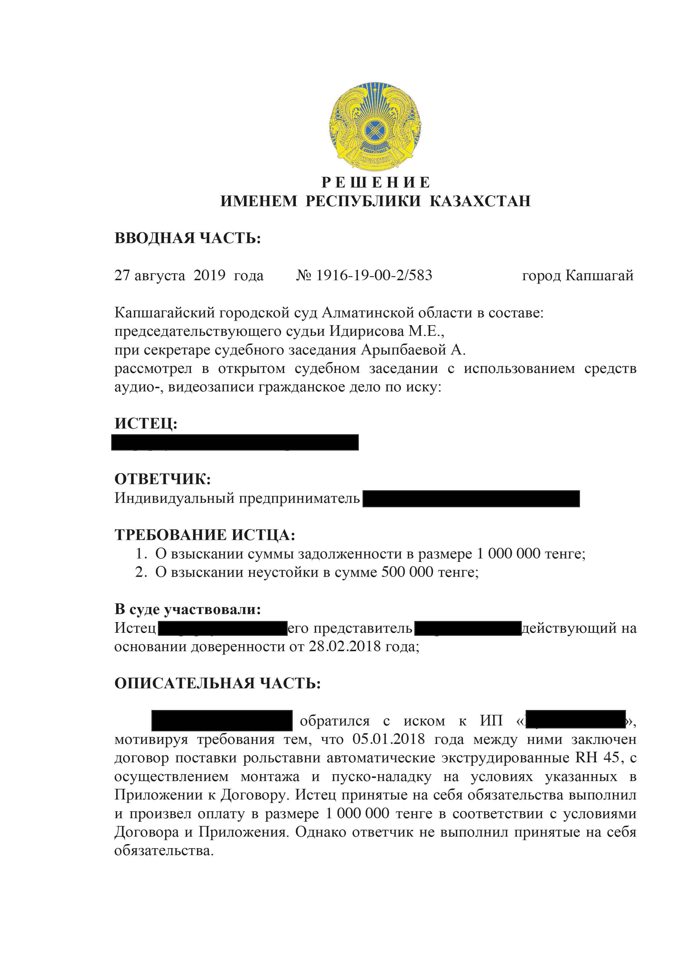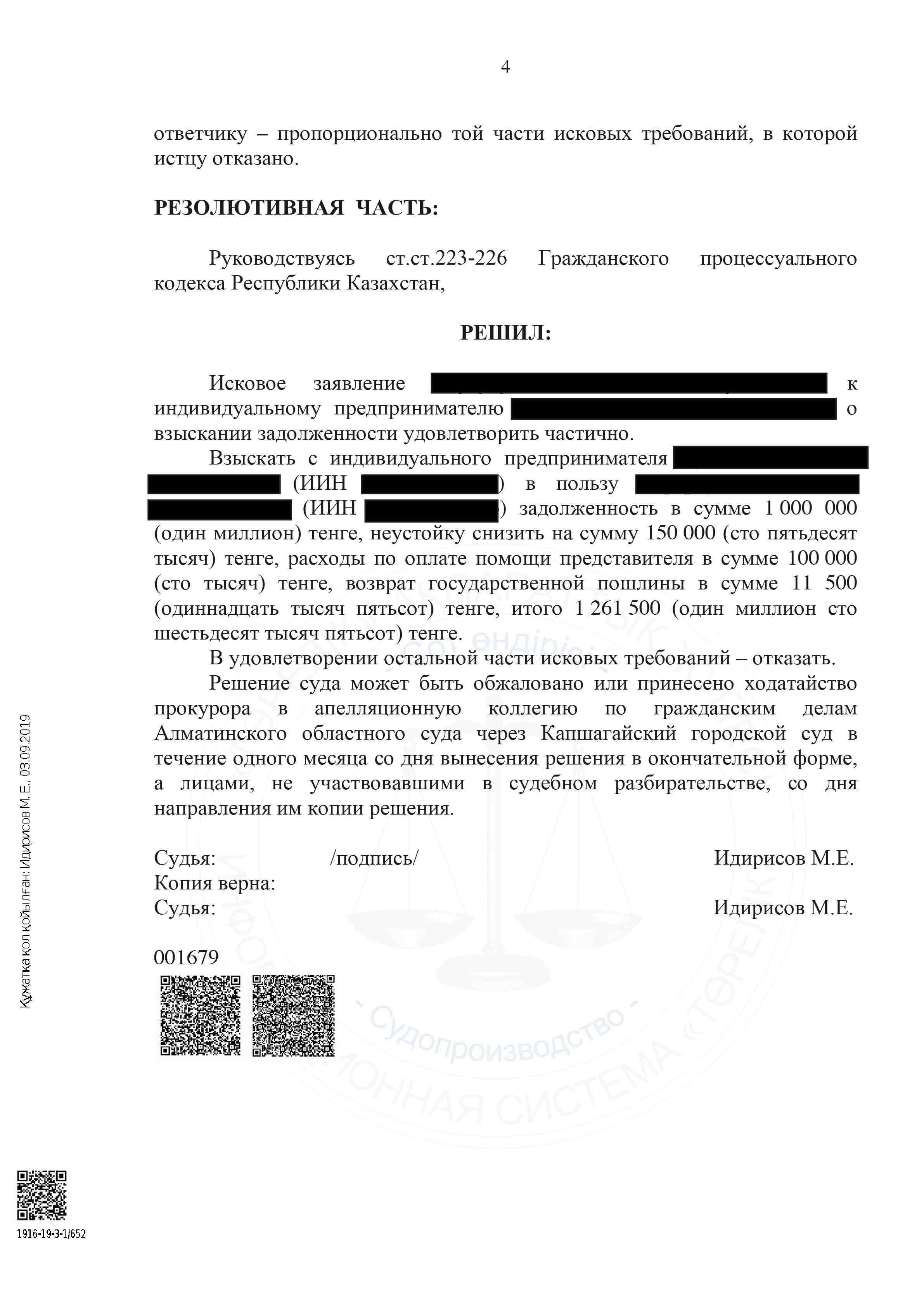 В результате проделанных работ Судом было решено взыскать сумму задолженности и дело было передано к Частному судебному исполнителю на исполнение Решения суда.