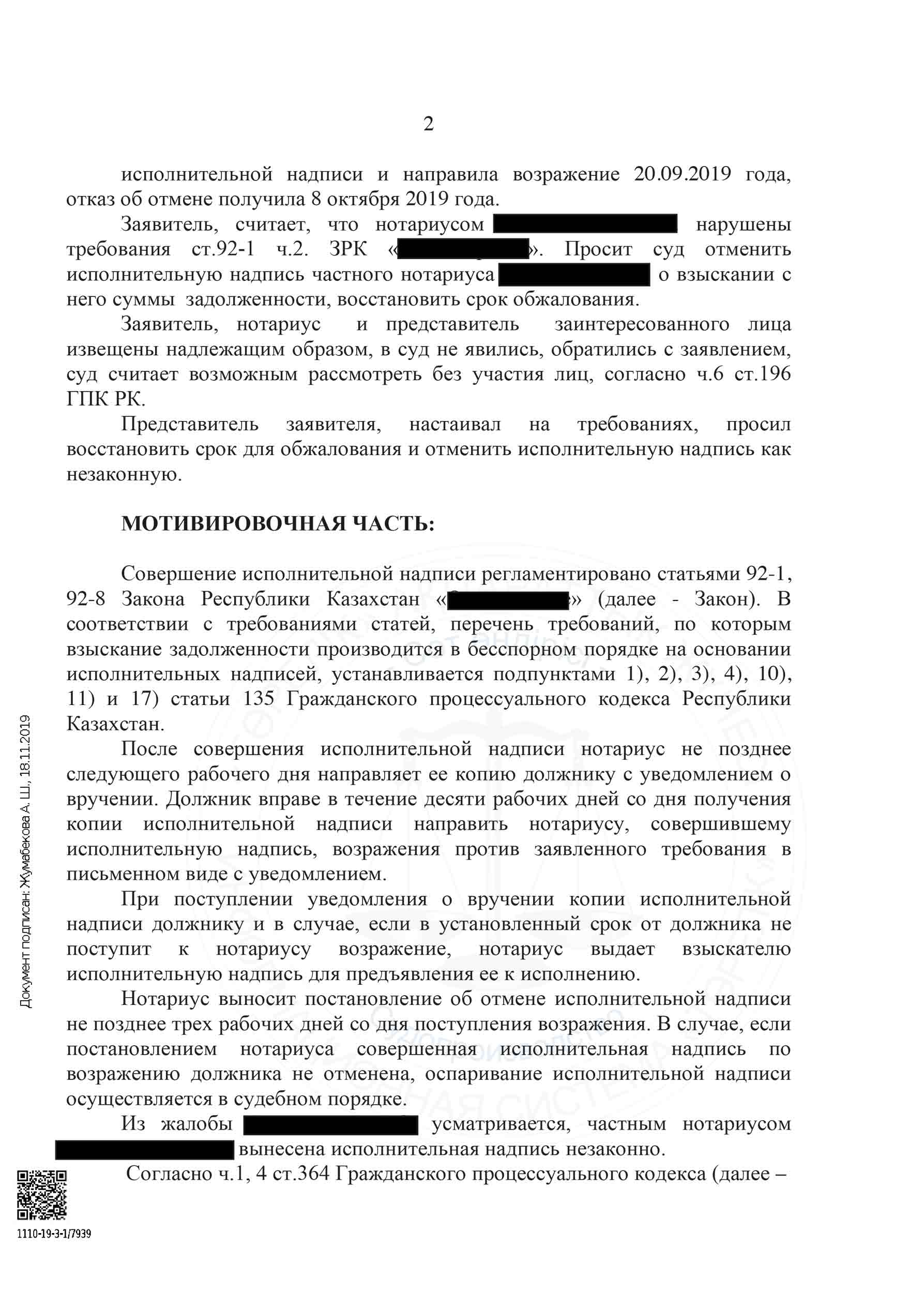 Выслушав доводы и изучив материалы, Юристы компании пришли к выводу о необходимости по месту регистрации Нотариуса в Кокшетауский городской суд
