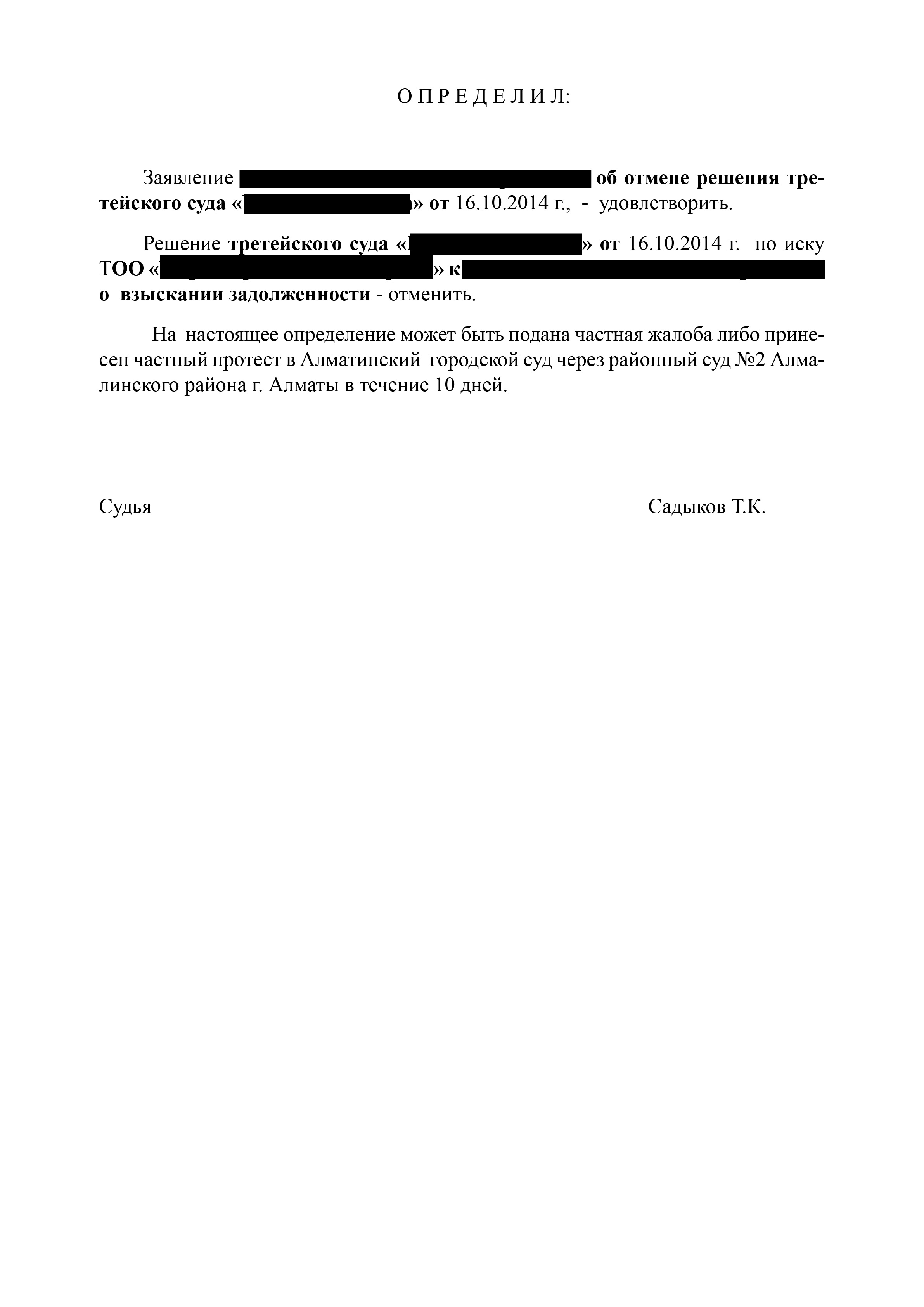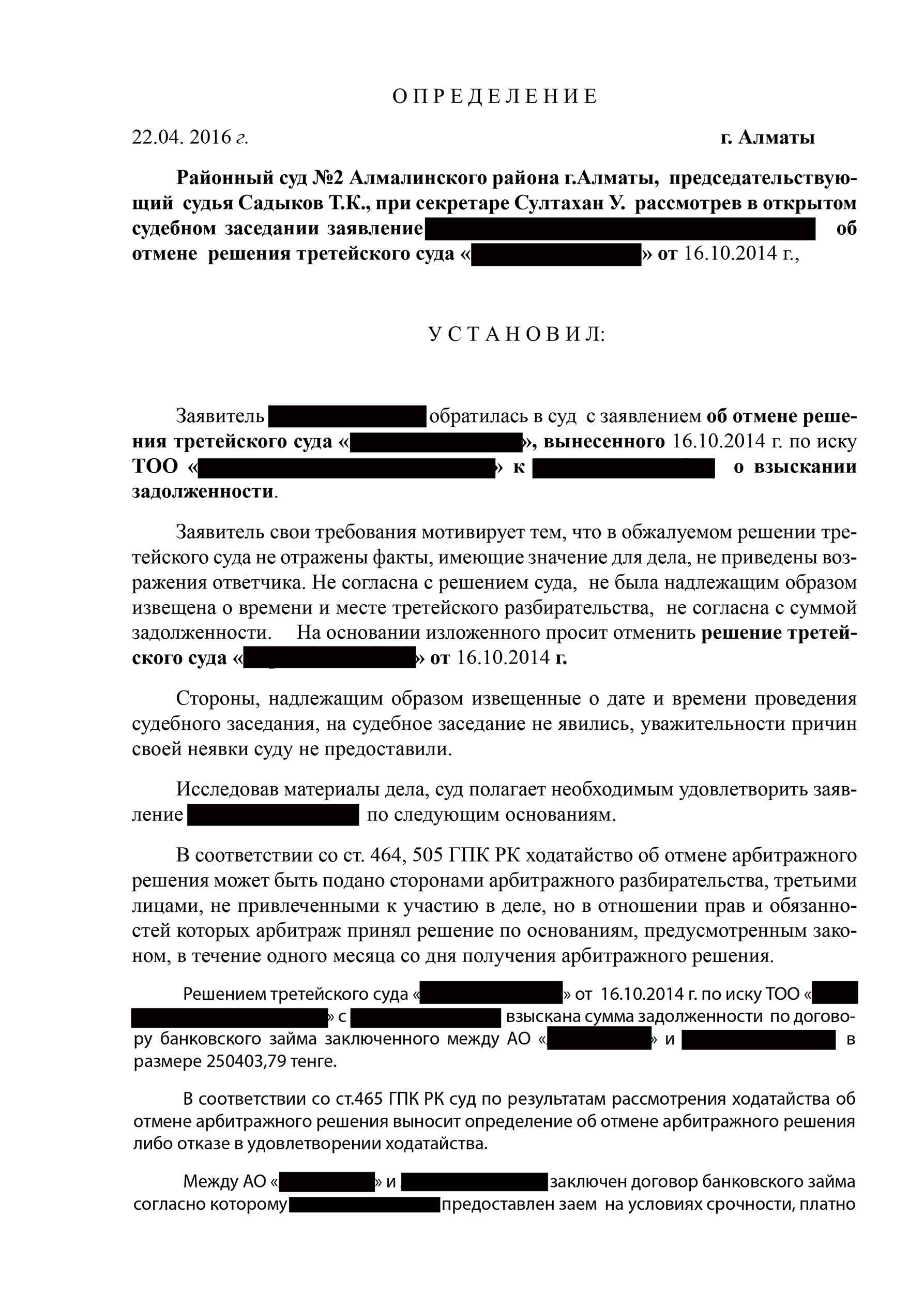 В результате всех предоставленных доводов и доказательств Юристами компании, суд отменил Третейское решение тем самым было восстановлено справедливость и восстановлены нарушенные права Клиента.